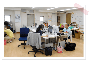 主治医や療法士やなどと連携を密に取れる医療体制のため、0歳から100歳まで、あらゆる症状の利用者さんでも対応しているのが特徴。毎朝と月に一度に夜のカンファで、情報共有も密に行っている。また小さな子どもがいるスタッフに対して、仕事の緊急時やカンファの際に事業所が預かるなどの対応も。オンコール対応もしているが、日中ケアの徹底により、コールが鳴ることはほとんどない。